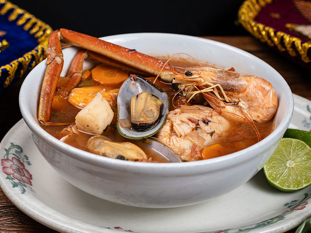 A succulent seafood soup, made with shrimp, octopus, crab legs, clams, mussels, fish, scallops, celery and carrots cooked in our delicious seafood broth.